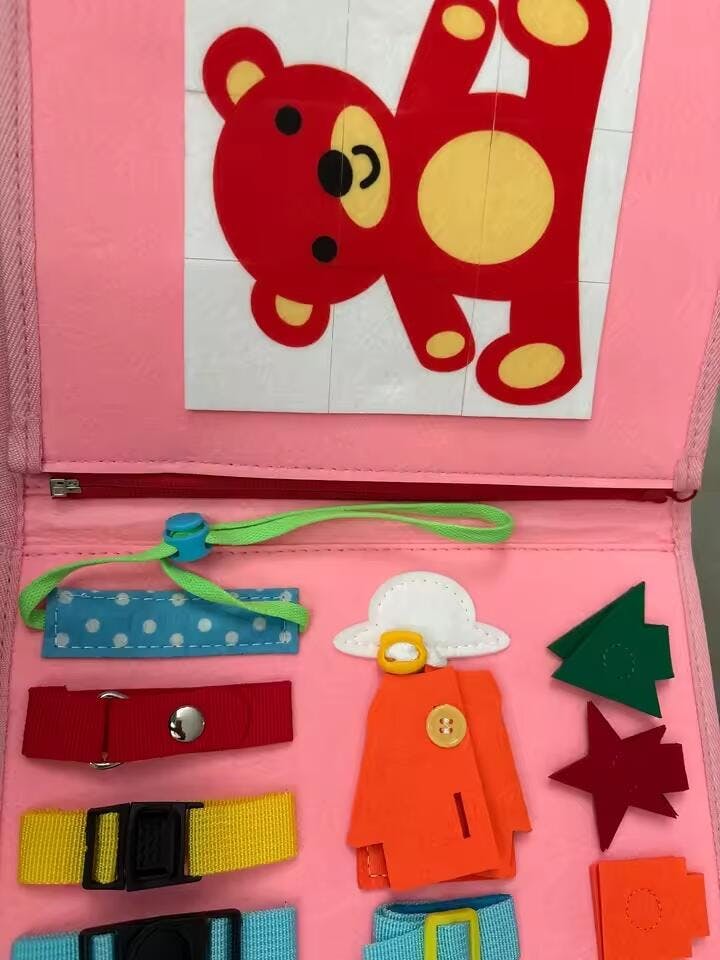 - Développe la motricité fine : activités à scratch, fermeture éclair, boutons, laçage, etc.
